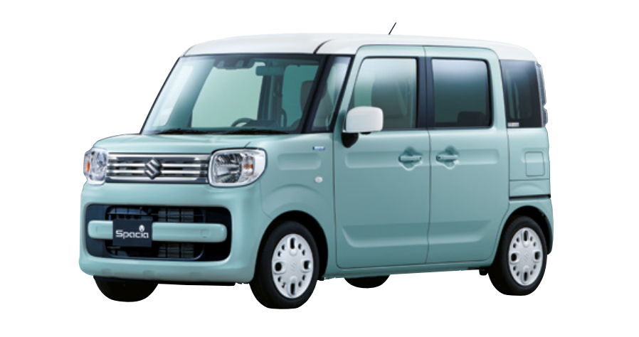 普段使いを意識したベーシックなエクステリアでスーツケースを意識したポップなデザインが魅力ノーマルのスペーシア、精悍なフロントフェイスが特徴で、スポーティーかつ上品な雰囲気に仕上げたスペーシアカスタム、アウトドアを意識したSUVらしいスクエアなデザインが大きな特徴のスペーシアギア、そして、スペーシアカスタムをベースに4ナンバーの軽商用車として軽商用車と軽自動車のいいとこ取りをしたスペーシアベースがあります。